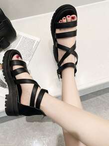 Zip Back Ankle Strap Wedge Sandals