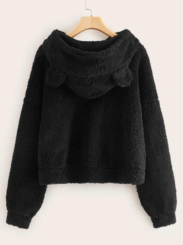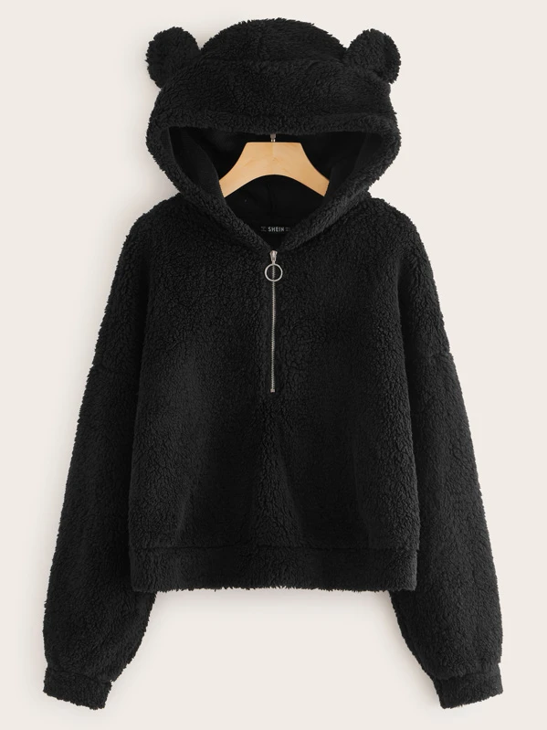 Zip Half Placket Teddy Ear Hoodie