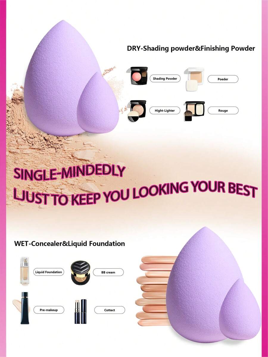 baopinger 3pcs Drop-Shaped Purple One Big Two Mini Water Drop Make-Up Sponge Set, Drop-Shaped Makeup Soft Foundation Powder Puff Concealer Flawless Blending Makeup Sponge