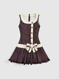 ROMWE Avant Retro Sweetheart Tiramisu Polka Dot Bow Sleeveless Mini Dress
