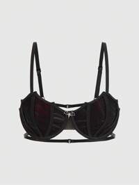 Boho Gothic Style Wide Leg Pants For Women, Featuring Water Soluble Lace Hem, Mesh Panel And Tassel Detailing