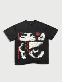 Street Life Spring/Summer Casual Graphic White Men'S Gothic Print Short Sleeve T-Shirt, Suitable For Everyday Wear Spring/Summer, Halloween