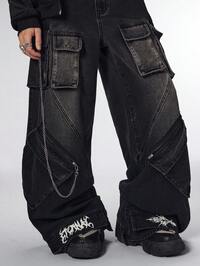 Men's Monster Embroidery Pocket Loose Fit Wide Leg Jeans