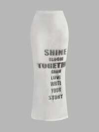 ROMWE Avant Oversized English Text Mesh Blurry Print Slim Fit Maxi Skirt