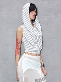 ROMWE Avant Avant Striped Turtleneck Hoodie, Y2K Streetwear Style Crop Top For Women