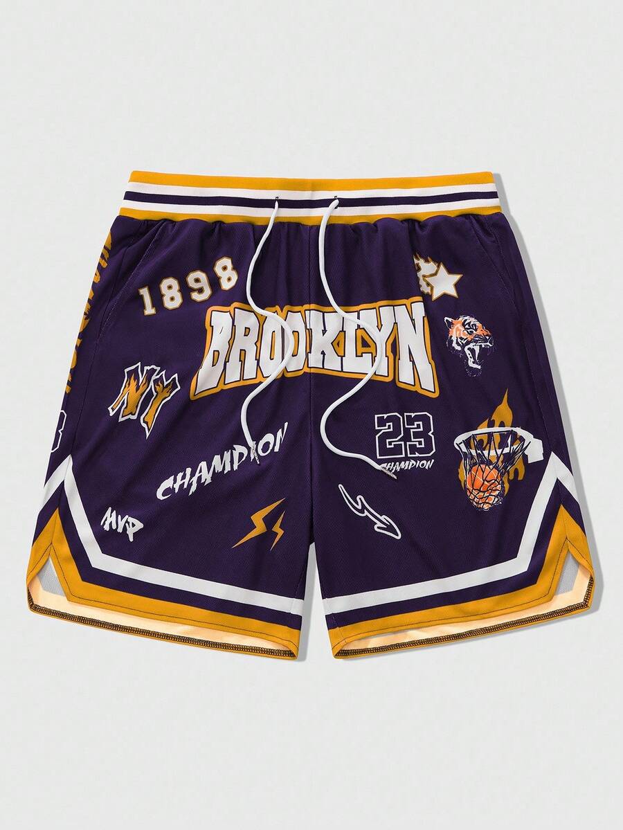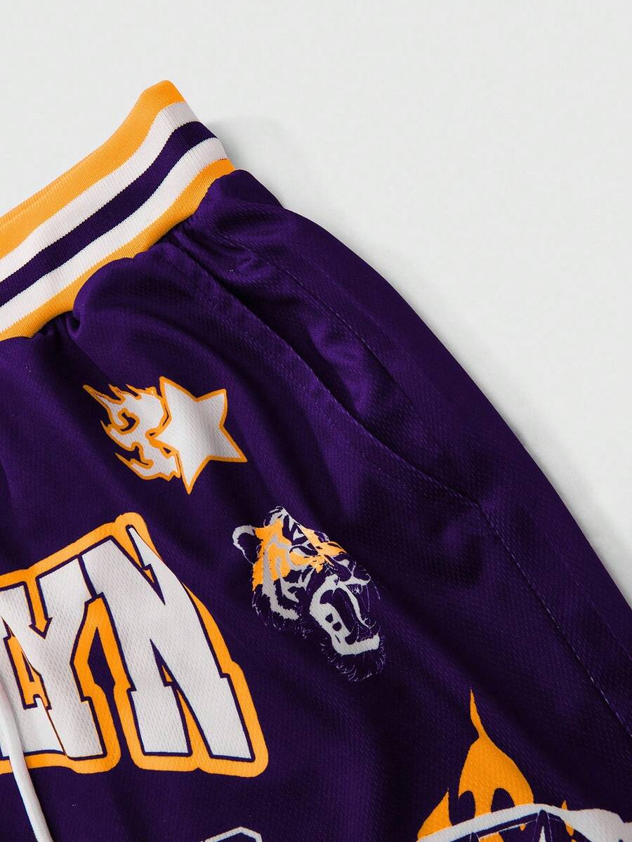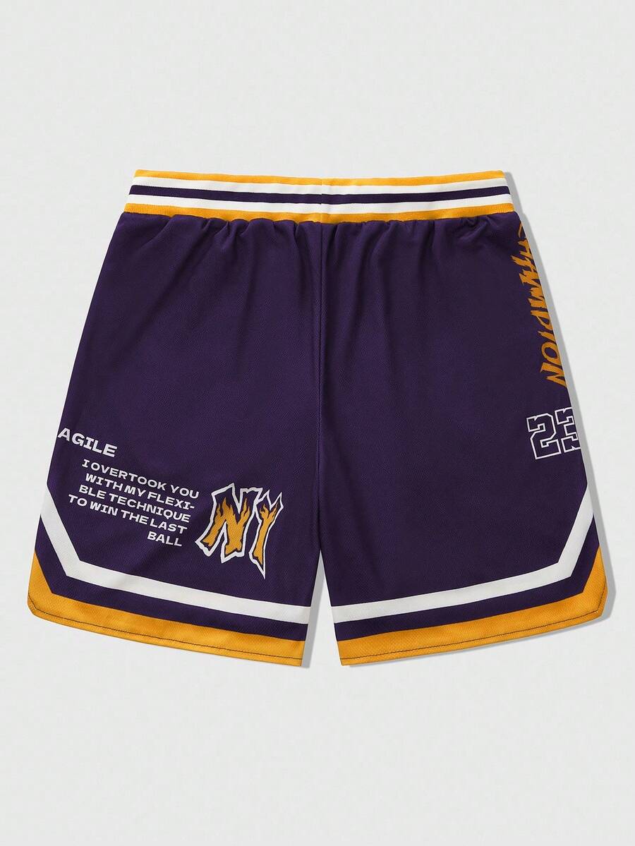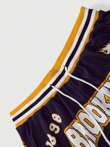 Street Life Men's Drawstring Contrast Color Letter Pattern Casual Loose Shorts