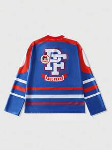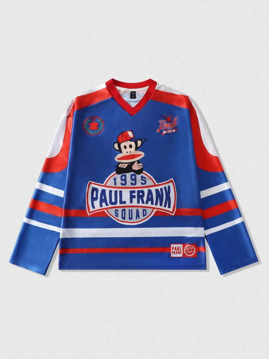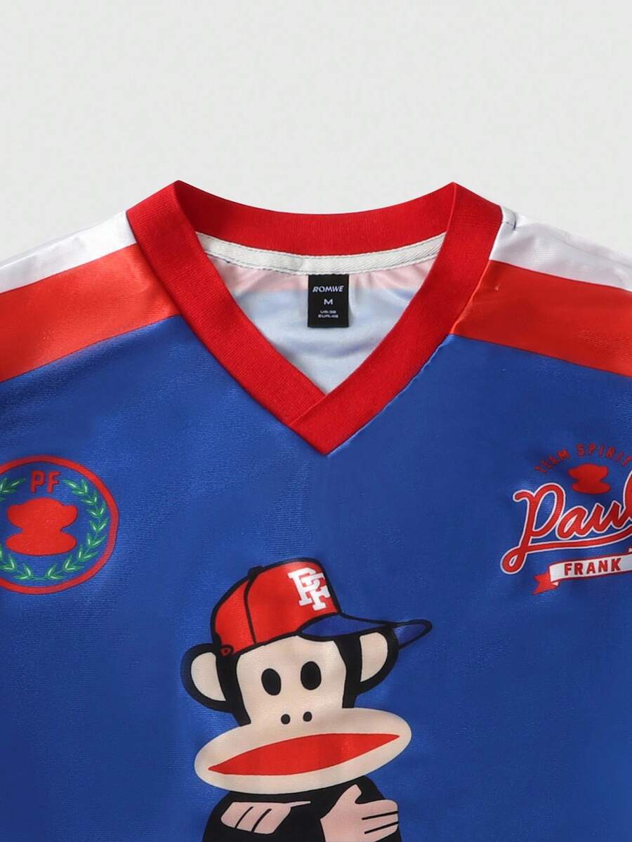 Paul Frank X ROMWE Men's Casual Sports Colorblock Monkey & Letter Graphic Long Sleeve T-Shirt, Autumn