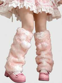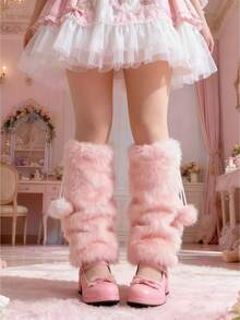 Fairycore 1 Pair Light Brown Christmas & Halloween Decorative Leg Warmers, Y2K Sexy & Cute Deer/Animal Print With Tie-Up Fuzzy Pom Pom, Warm & Fashionable For Women, Suitable For Daily, Campus, Shopping, Travel In Autumn/Winter