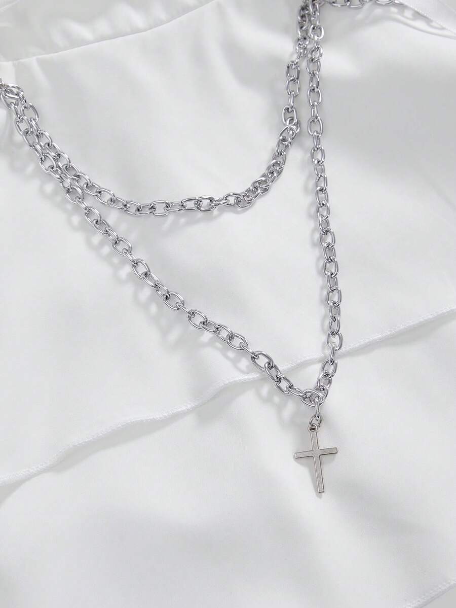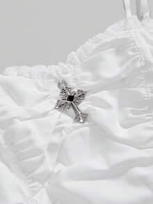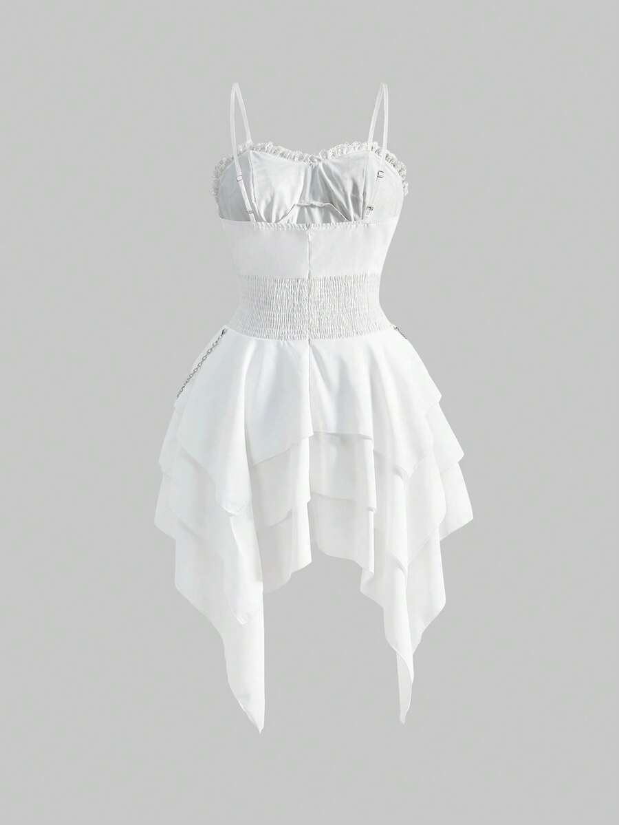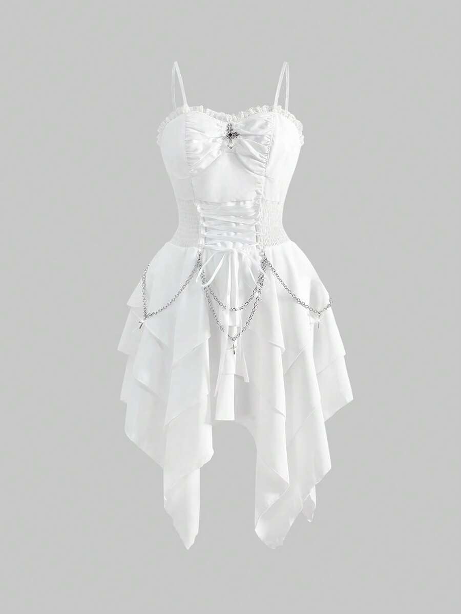 Vintage Gothic Metal Chain Detachable Waist Strap Asymmetrical Layered Hem Women Dress