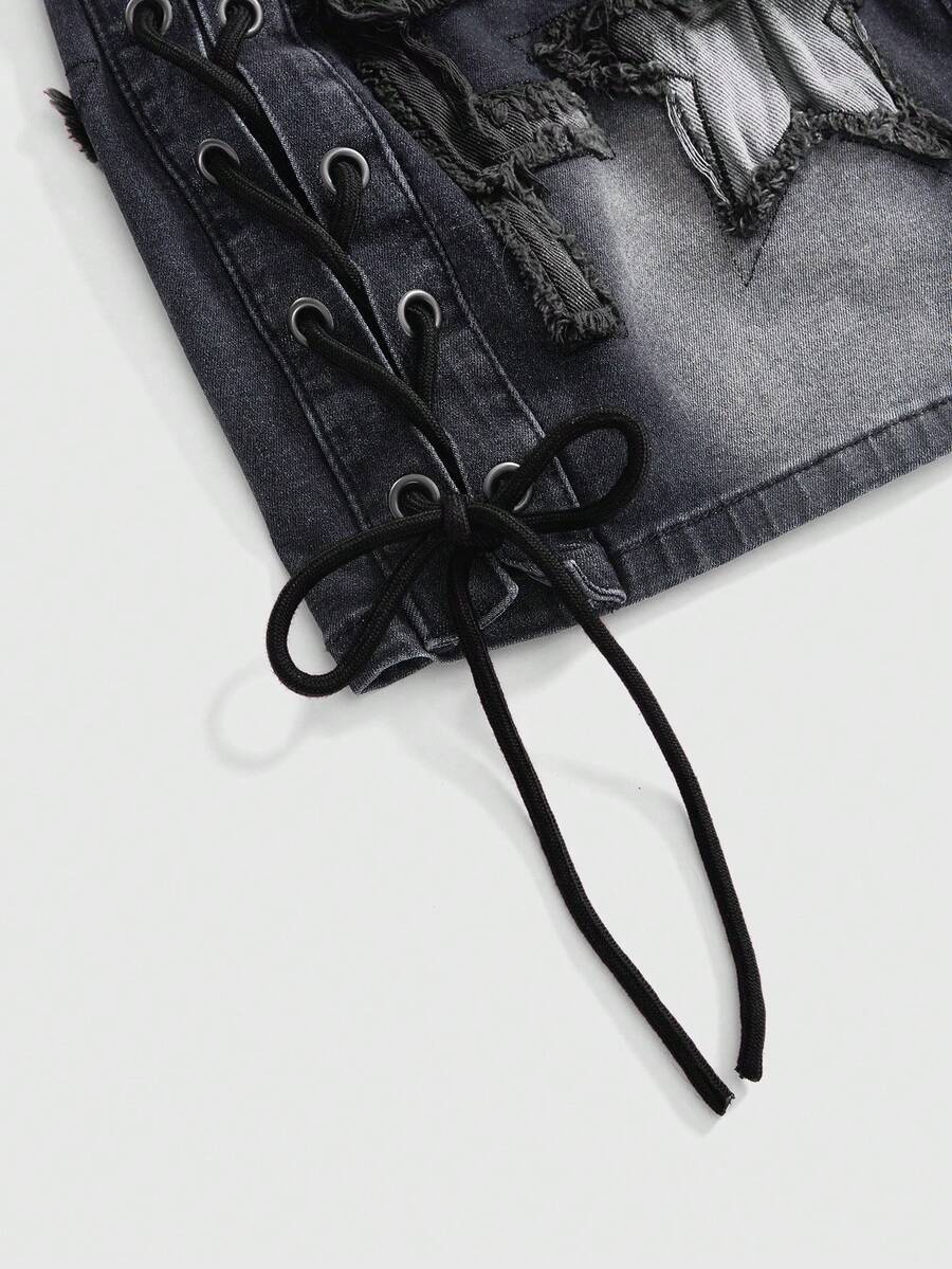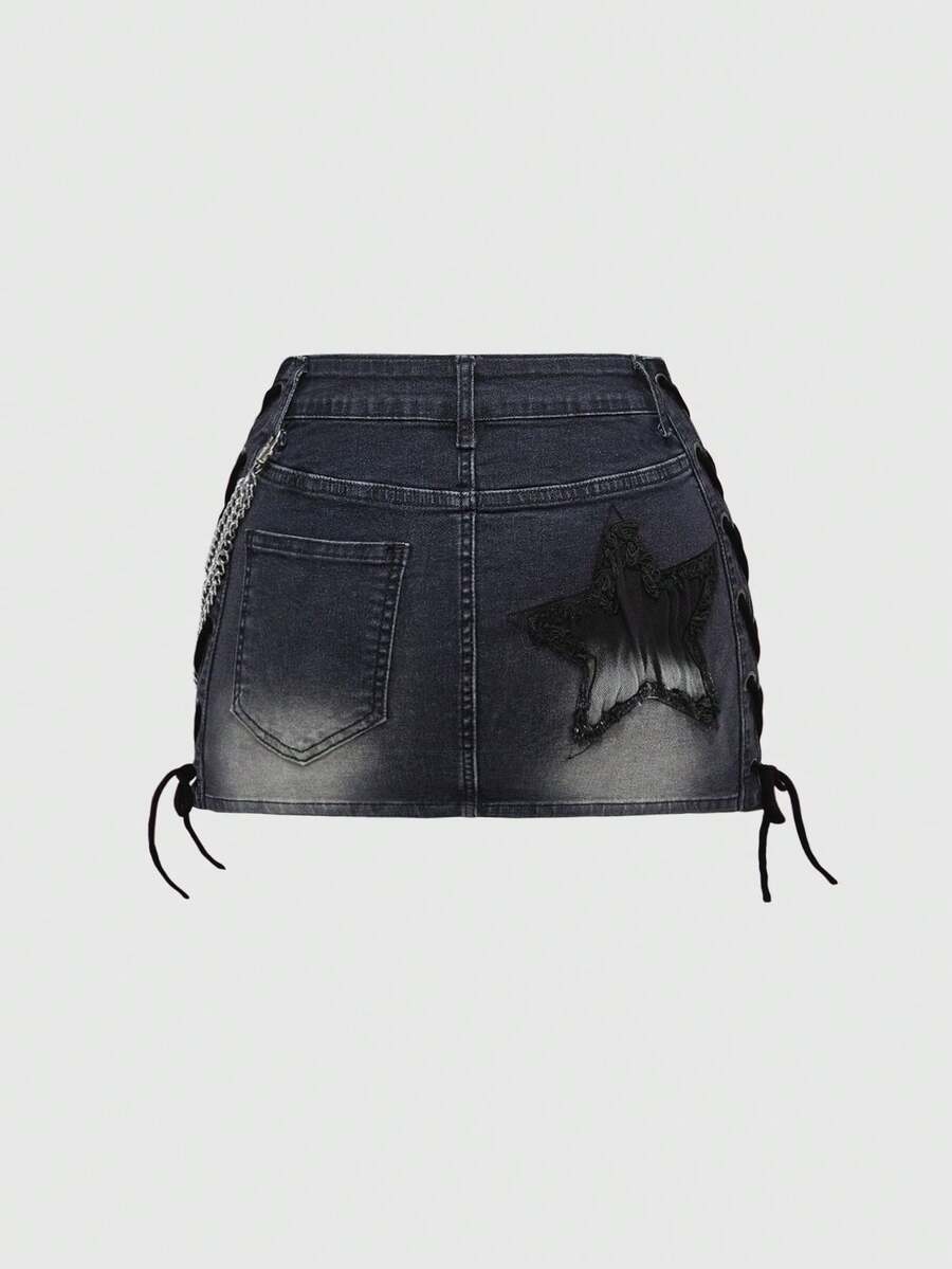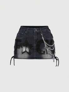 J-Fashion Y2K Retro Low Waist Contrast Color English Letter Print Red Denim Mini Skirt For Women