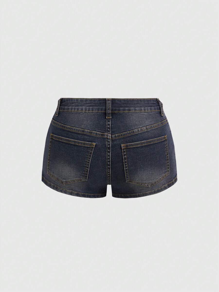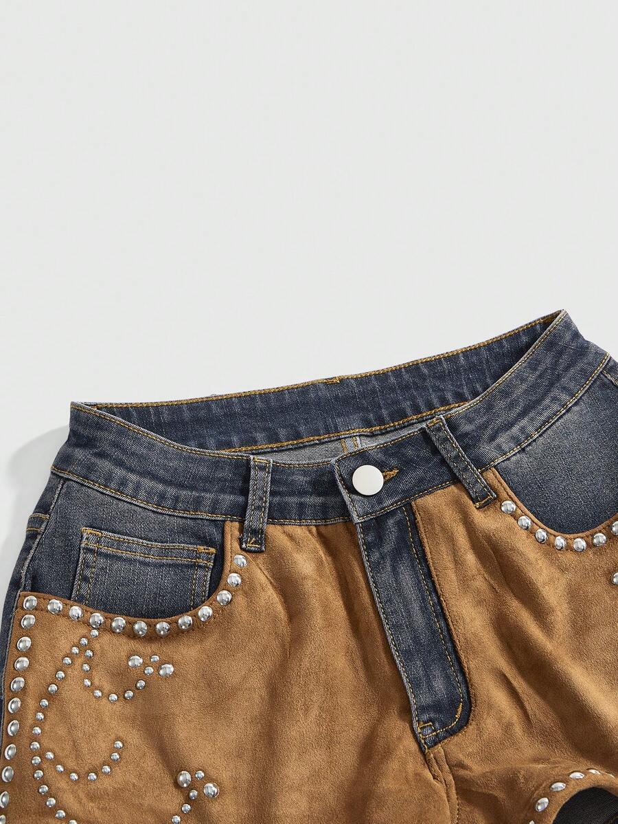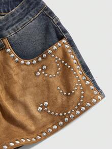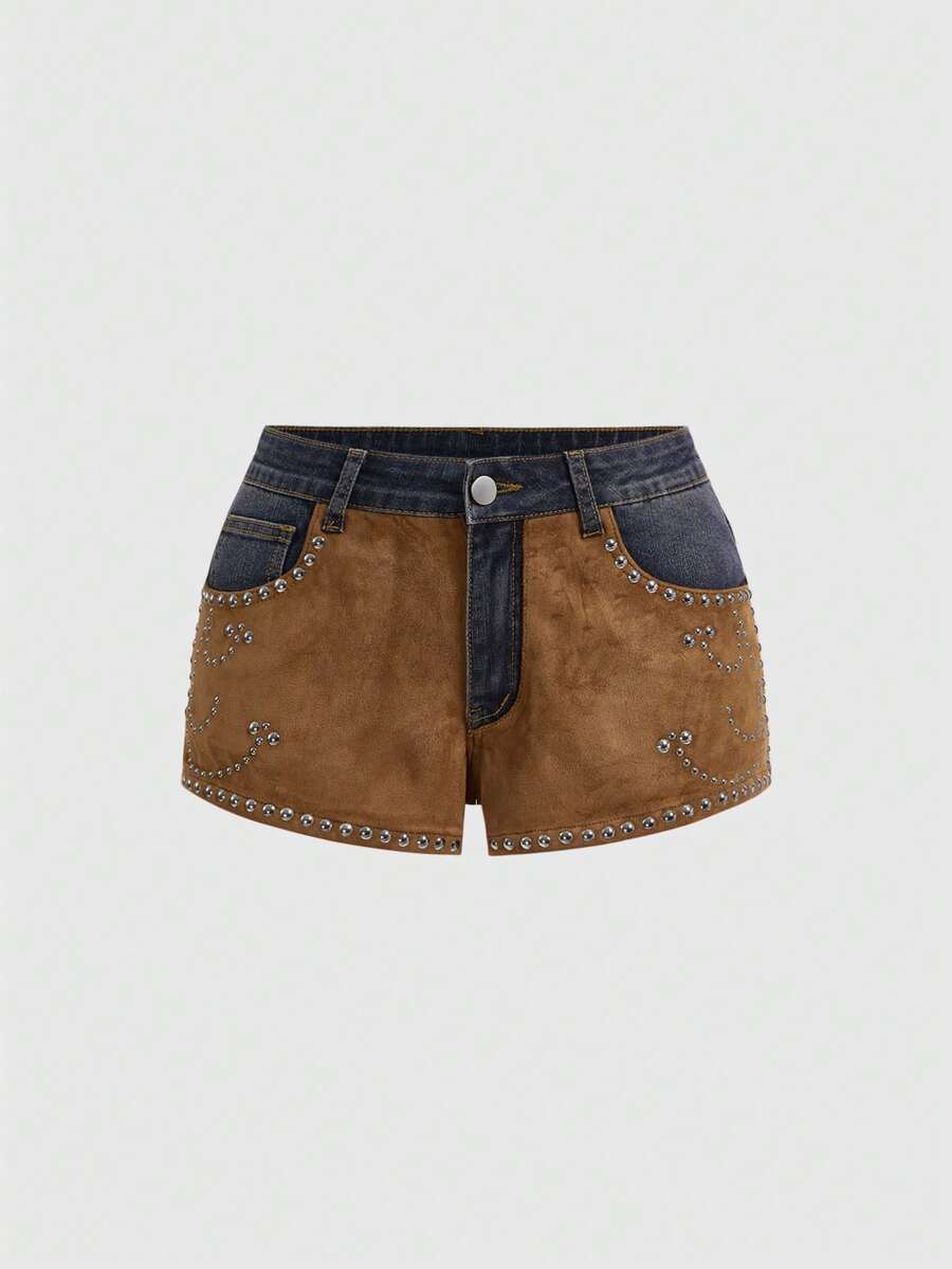 Hippie Western Cowgirl Suede Patchwork Distressed Vintage Women's Low Waist Denim Skinny Shorts