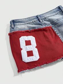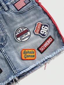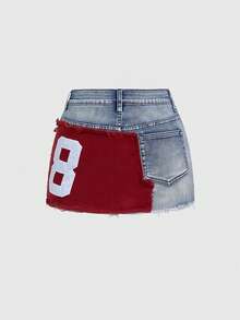 ROMWE Avant Vintage Distressed Retro Logo Denim Mini Skirt For Women
