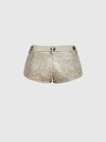 Millennium Babe Vintage Hippie Babe Animal Print Faux Fur Patchwork Mini Low Waist Shorts For Women