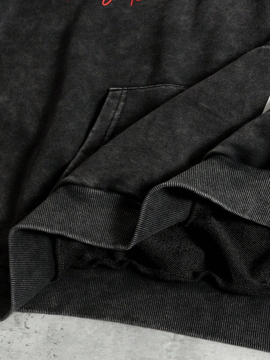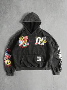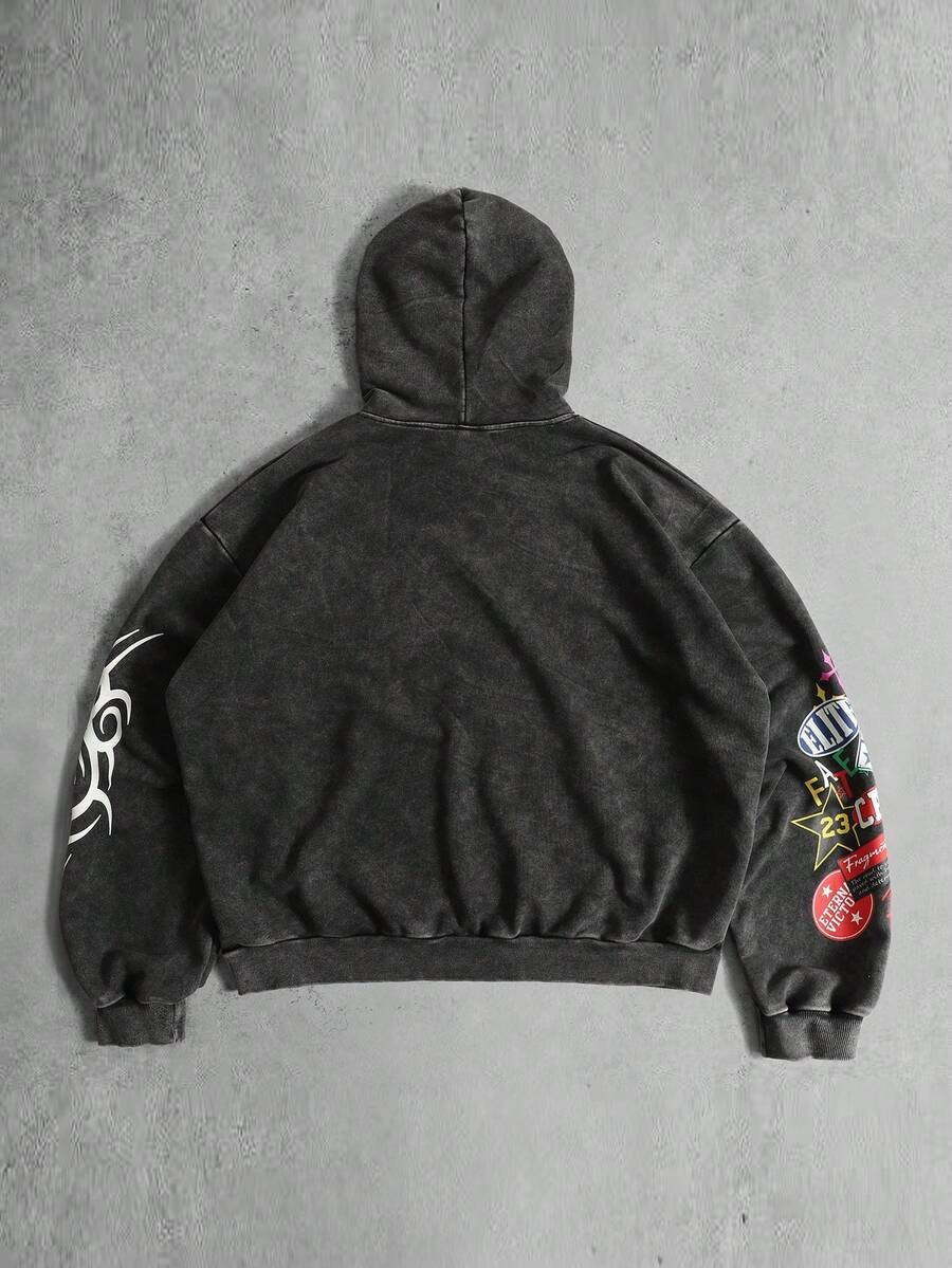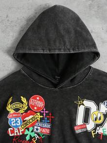 Men's Vintage Washed Graphic Print Hoodie, Streetwear Retro Style