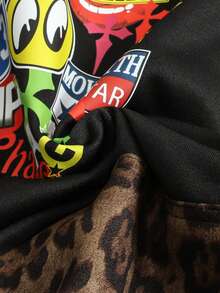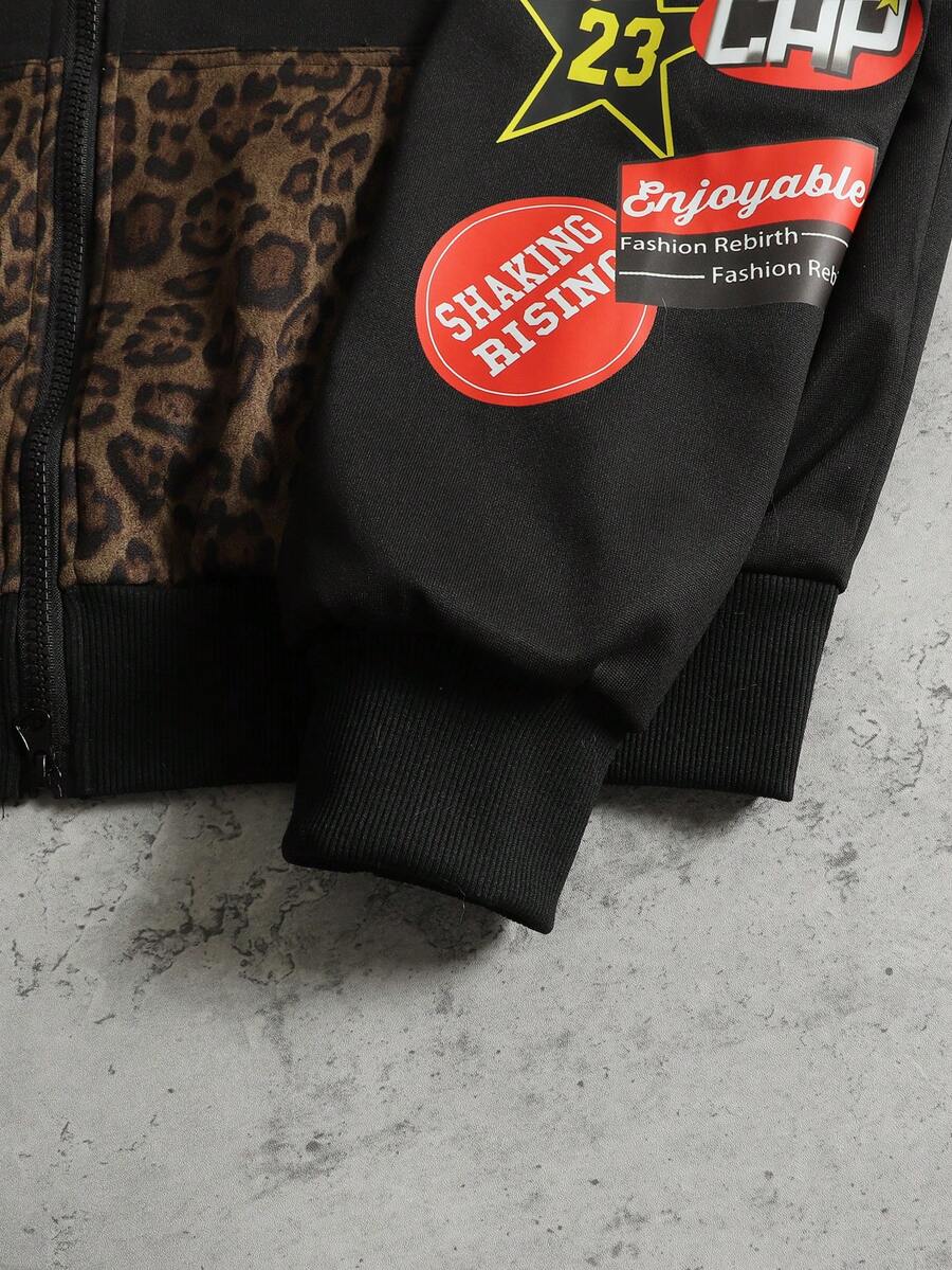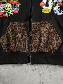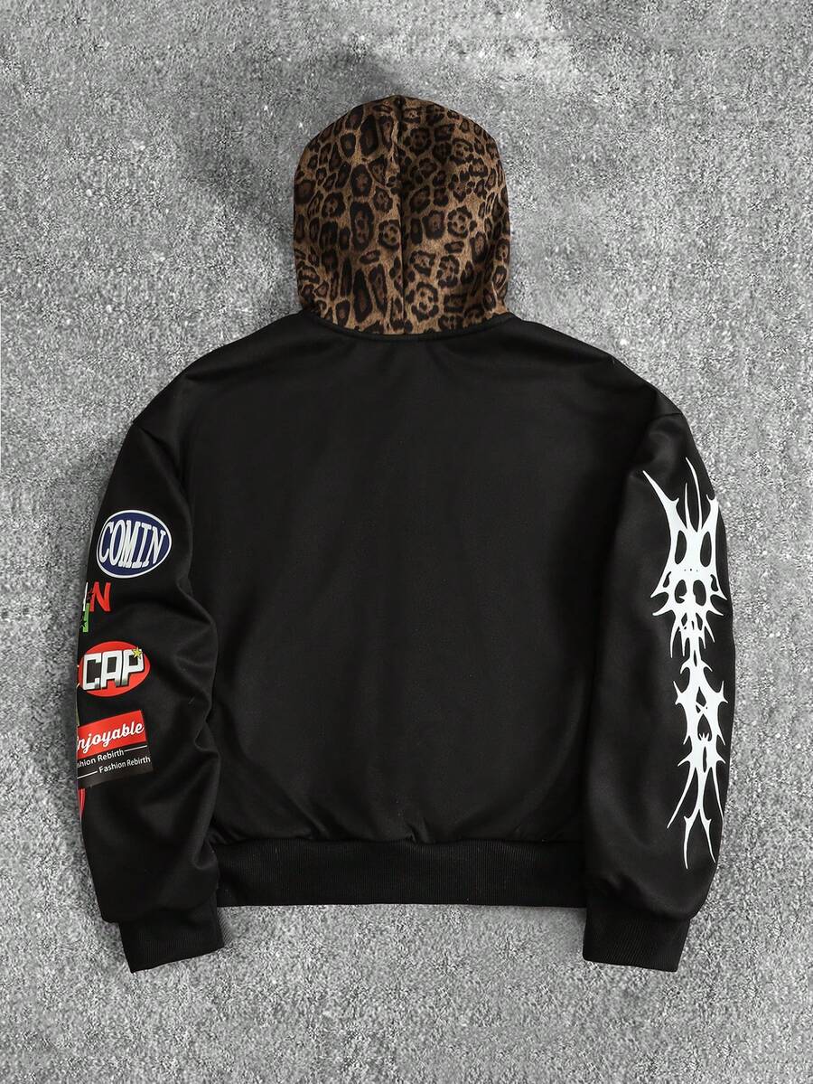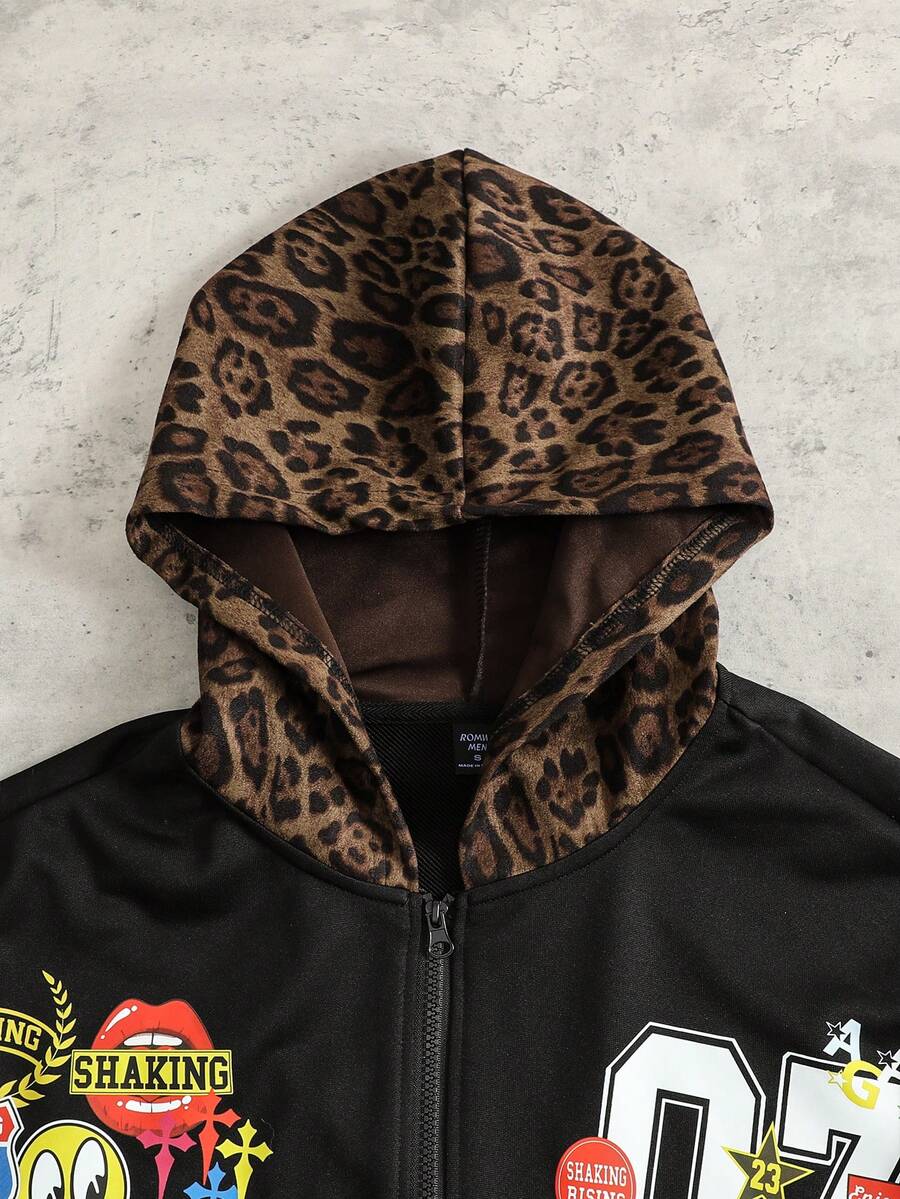 Men's Leopard Print Contrast Color Hoodie, Retro Street Style