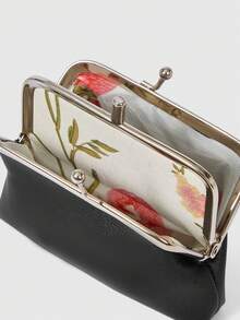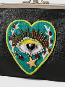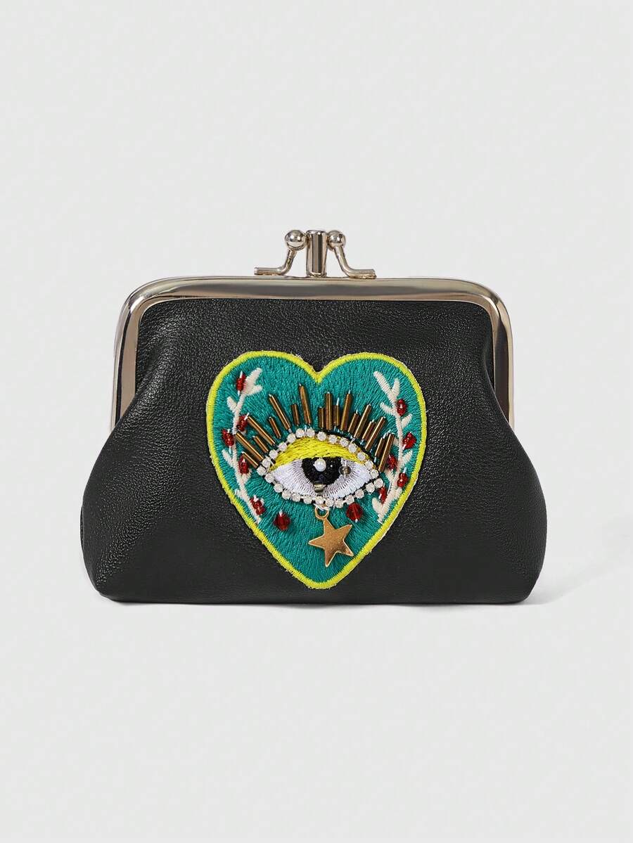 1pc Gothic Style Blue Eye & Red Heart Beaded Pu Leather Short Wallet For Women
