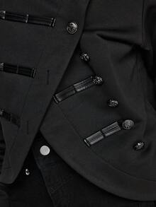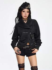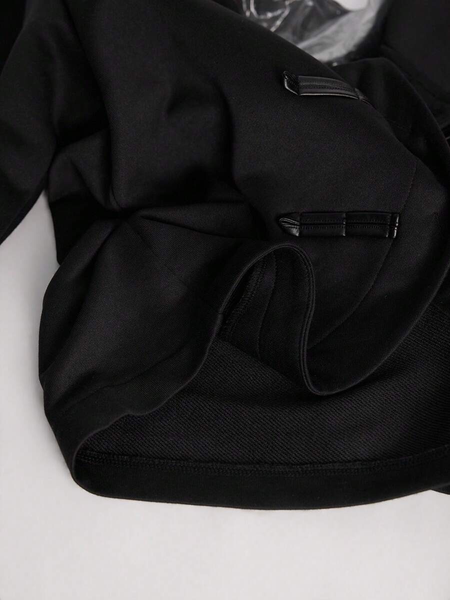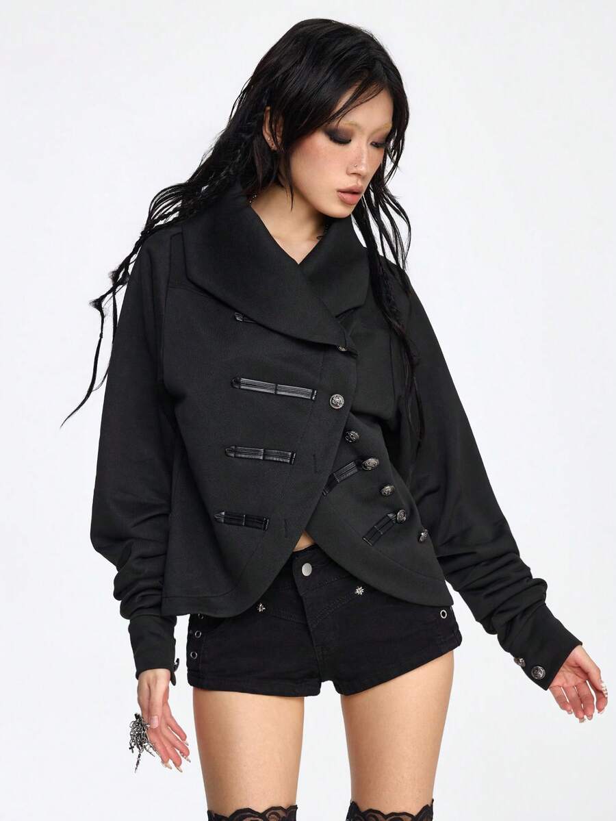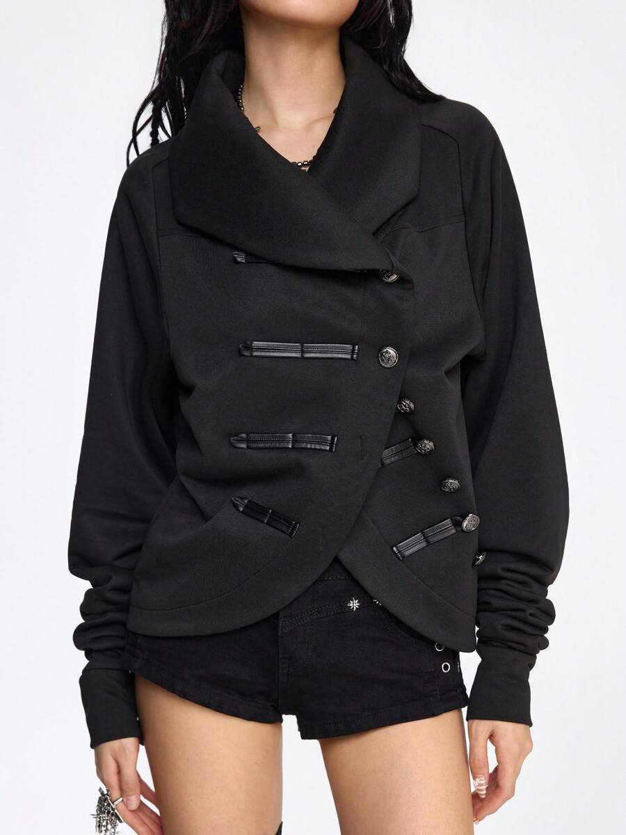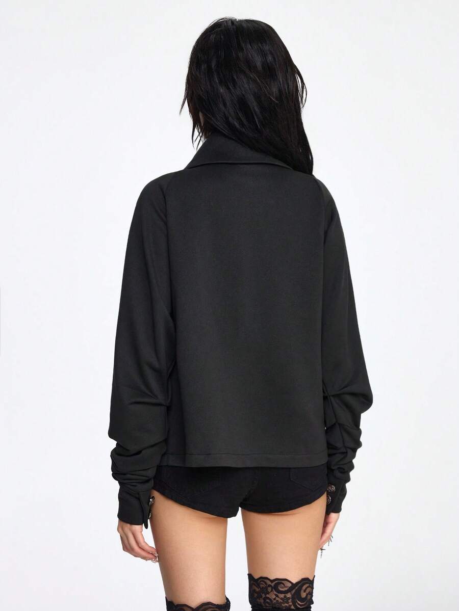Grunge Punk Women's Solid Color Overlap Button Asymmetrical Hem Fashionable Versatile Casual Long Sleeve Sweatshirt, Autumn/Winter
