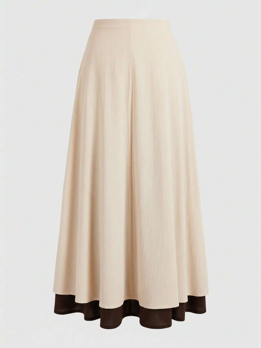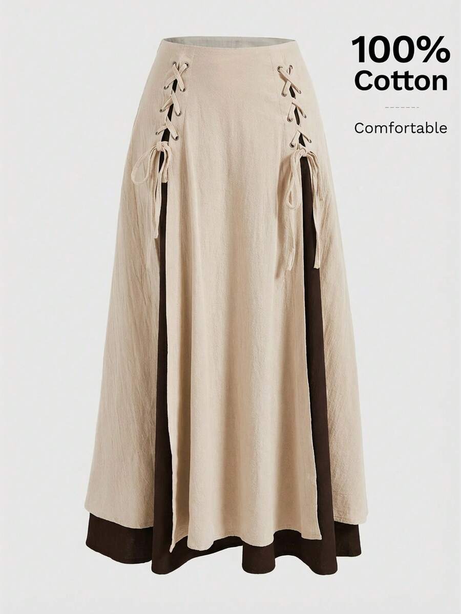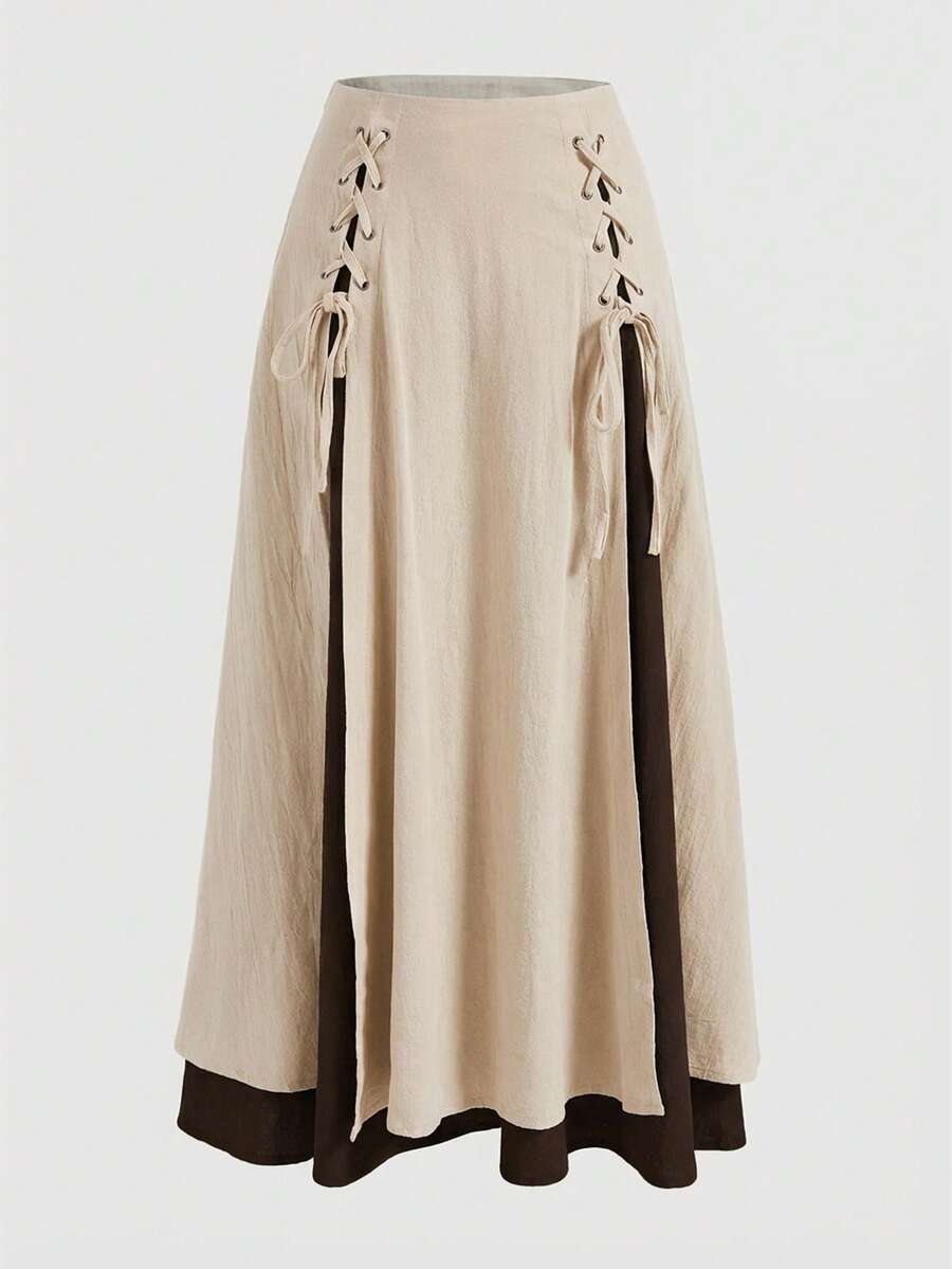 Fairycore Countryside Style 2 In 1 Color Block Tie-Up Plus Size Women Skirt