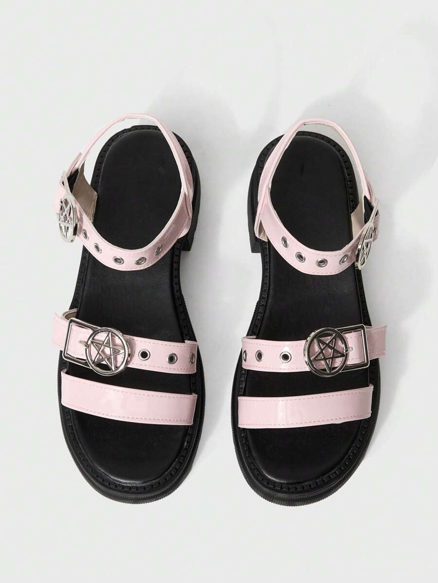 Women's Summer Open Toe Dark Rock Punk Goth Roman Beach Sandals, Star Strap Platform Wedge Sandals Spring Shoes Spring Break Easter, Halloween For Christmas Valentine's Day